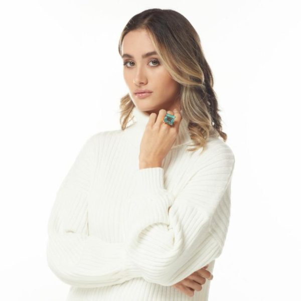 Product Description: Elevate your everyday style with this sophisticated gold-plated adjustable ring featuring a brilliant aqua square-cut center stone that catches the light beautifully.