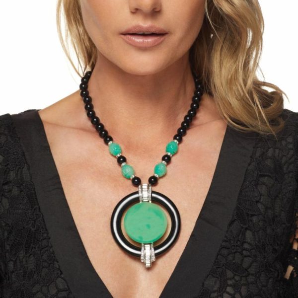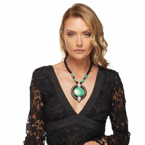 Product Description: This stunning piece makes a truly unique statement. The sophisticated black and jade beaded silver necklace featuring a jade center pendant with S-hook clasp delivers exceptional elegance that commands attention in any setting.