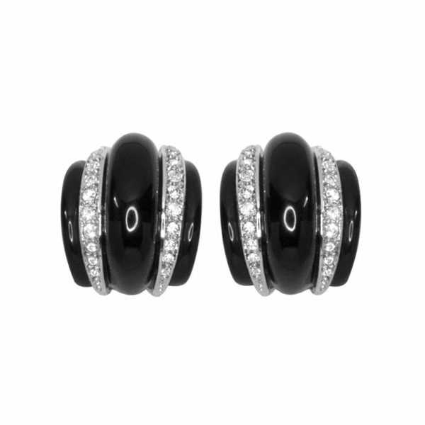 Product Description: Sleek crystal-accented bands elegantly wrap around these sophisticated black resin clip earrings, offering timeless versatility that complements any ensemble with effortless style.