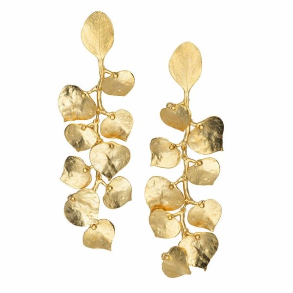 Product Description: These satin gold leaf earrings will make it feel like the warm days of spring on even the dullest of days.