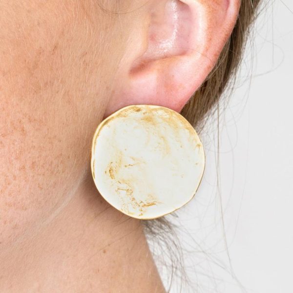Product Description: These bold large satin gold coin button clip earrings will be sure to stand out.
