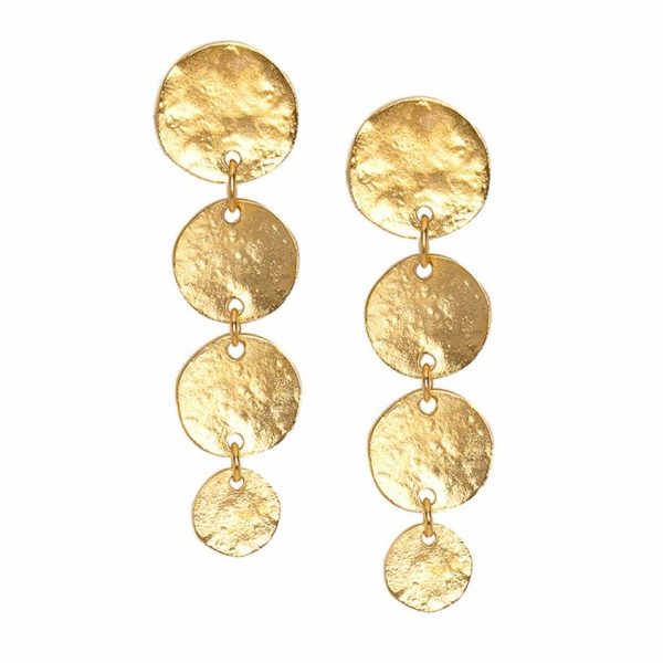 Product Description: Gold-plated graduated coin drops will dazzle on your ears! Fastens with a direct post for pierced ears.