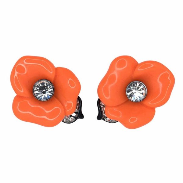 Product Description: Let your style come into full bloom in these coral flower earrings with black leaf lines and crystal centers.