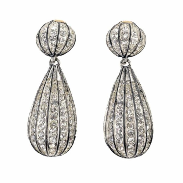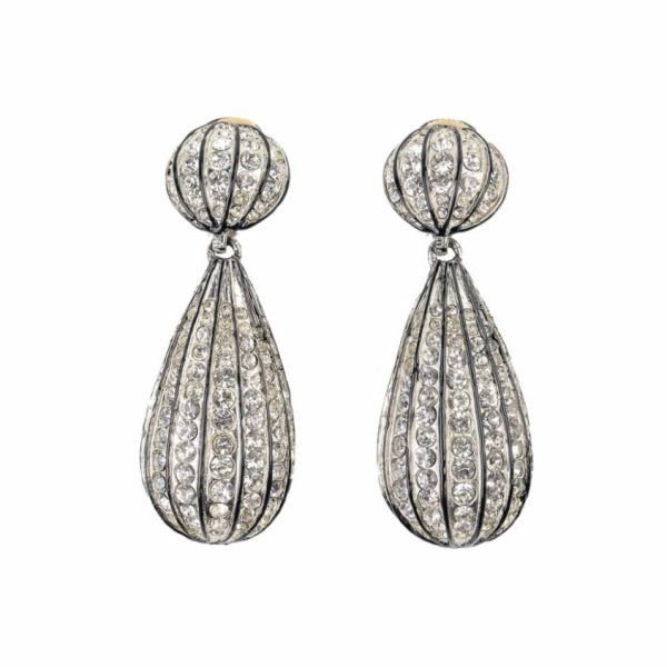 Kenneth Jay Lane Crystal & Black Enamel Lines Drop Earrings | Women Clear Crystal Earrings