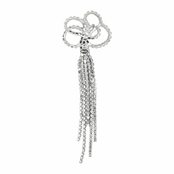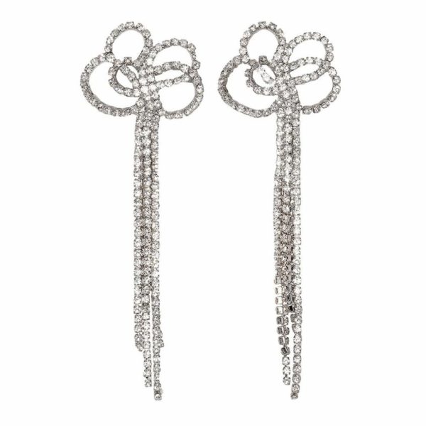 Product Description: These fabulous, rhodium-plated and glass crystal knotted bow pierced earrings are perfect for wedding season or formal events.
