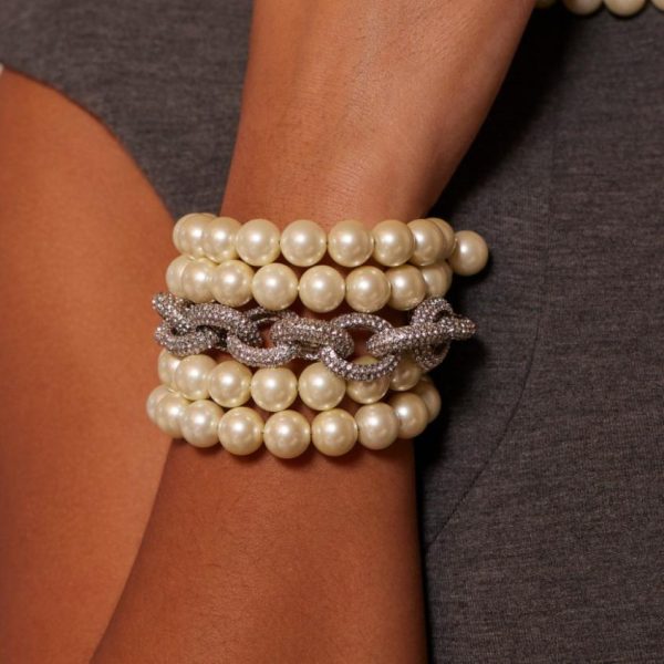 Product Description: A never-ending spiral of pearls is all a woman needs! This four-row, 12 millimeter faux pearl bracelet is the perfect everyday or party accessory.