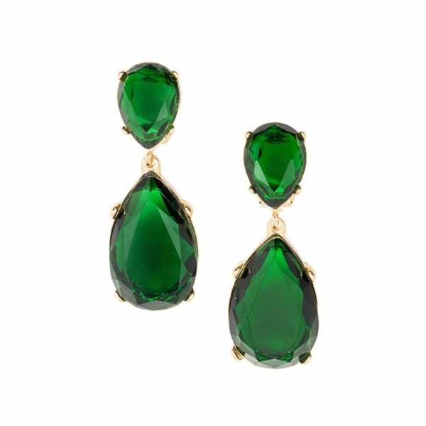 Product Description: Shimmering emerald stones surrounded by gold exaggerate the vintage sophistication of these KJL original glass stone impeccable teardrop earrings. Notably seen on Nicky Hilton, Kyle Richard and award-winning actress Angelina Jolie!