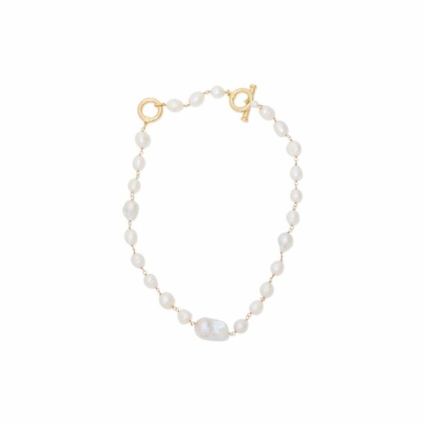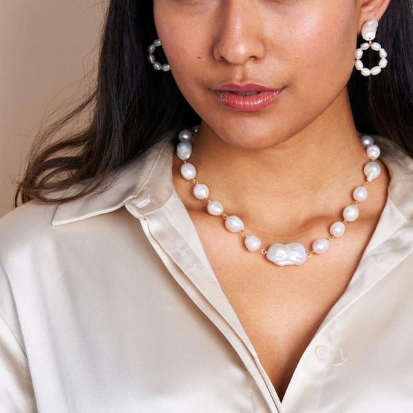 Description: The classic design of this necklace allows the natural allure of the pearls to shine, while the gold chain adds a touch of warmth and luxury. The necklace is designed to sit gracefully at the collarbone, making it the ideal length for layering with other pieces or wearing solo for a minimalist statement.