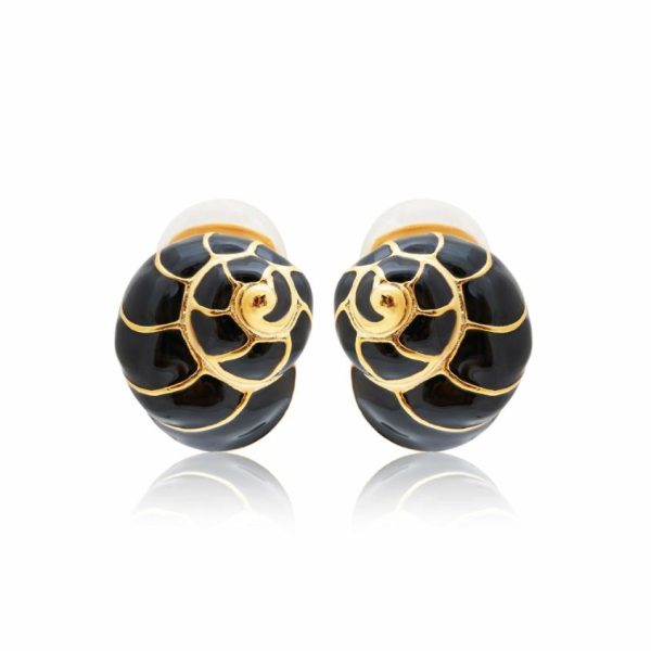 Product Description: These classic gold and black enamel shell clip earrings are heirloom-quality.