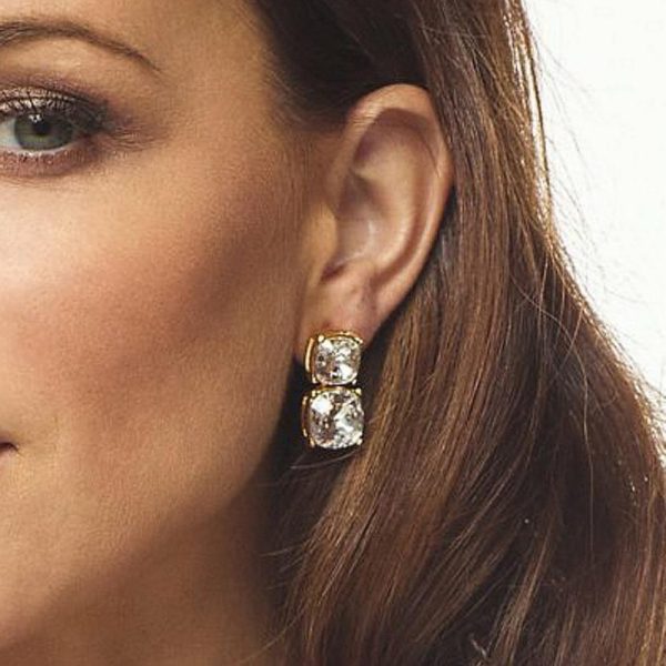 Product Description: These stunning gold and crystal square pierced earrings are most definitely heirloom-quality.