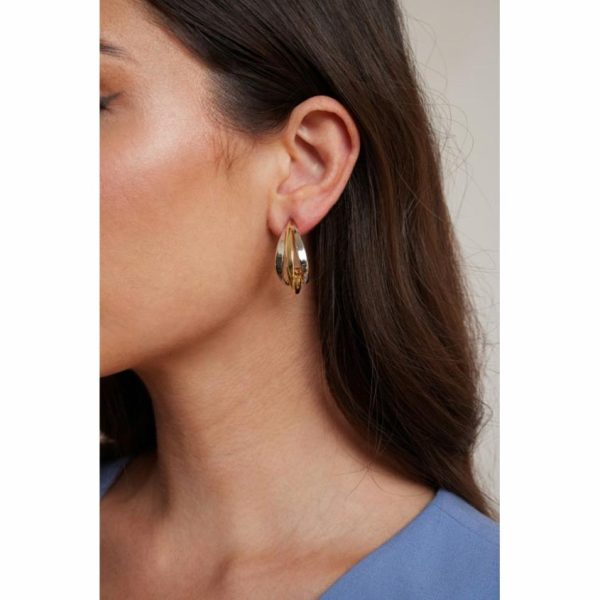 Kenneth Jay Lane Gold Double Ribbed Coral Domed Hoop Clip Earrings | Women Light Color Earrings