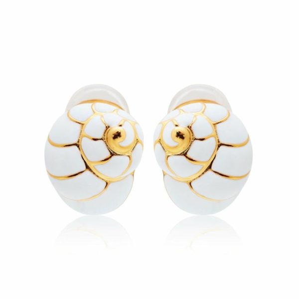 Product Description: These beautiful gold and white enamel shell clip earrings take your look instantly to your dream beach vacation.
