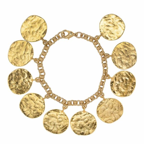 Product Description: This sophisticated gold coin charm bracelet delivers timeless elegance with just the right amount of sparkle to elevate any outfit.