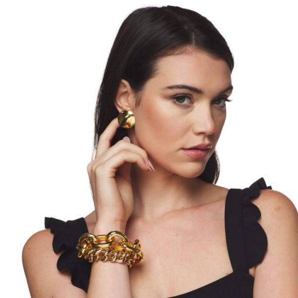 Pictured with our 9″ Polished Gold Medium Link Bracelet and our Polished Gold Large Link Bracelet
