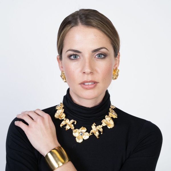 Kenneth Jay Lane Gold Flower Necklace with Pearl & Crystal