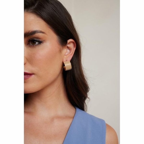 Charming gold hoop studded earrings adorned with pearls to enhance any look.