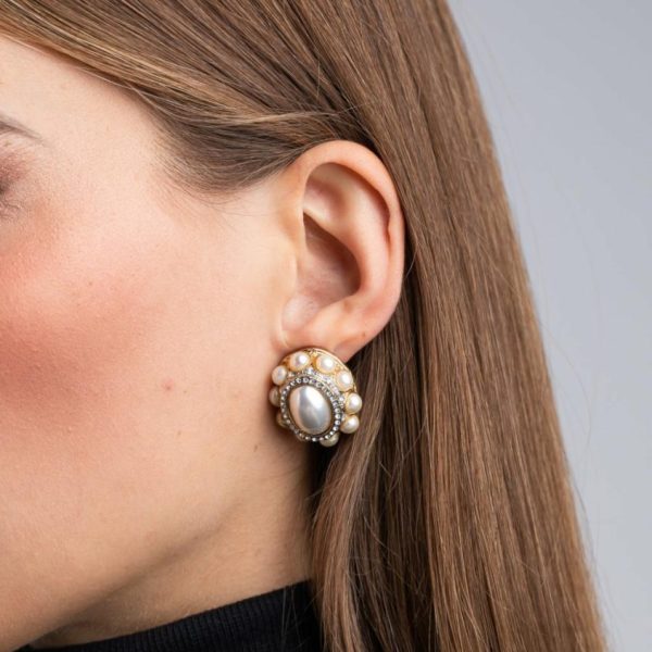 Product Description: Exquisite craftsmanship meets timeless elegance with these geometrically inspired clip earrings. The gold-plated oval design features lustrous cultured pearls and brilliant crystal pavé detailing, creating a sophisticated statement piece that elevates any ensemble from daytime casual to evening glamour.