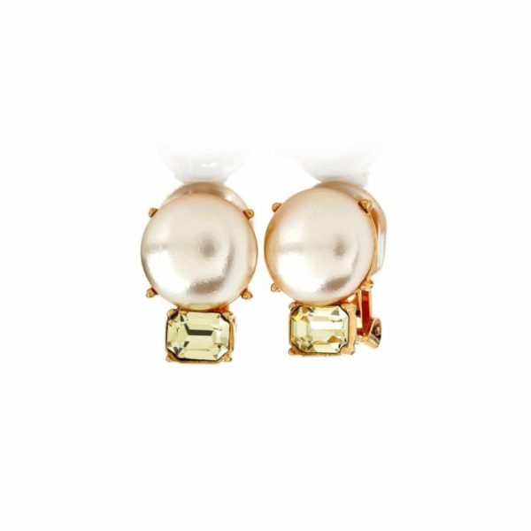 Kenneth Jay Lane Gold & Pearl Double Stone Clip Earrings