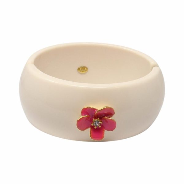 Product Description: The perfect, dainty piece for your collection. This gold and pink enamel flower detail surrounded by an ivory base cuff creates the ultimate piece to elevate any look.