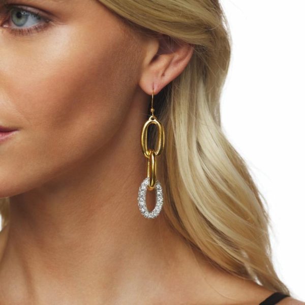 Product Description: Discover our stunning Gold and Rhinestone Link Fishhook Earrings, expertly designed by Kenneth Jay Lane to deliver timeless sophistication with contemporary flair. These eye-catching earrings feature a brilliant arrangement of polished gold and sparkling rhinestone links, creating a versatile statement piece that elevates any outfit with effortless glamour.