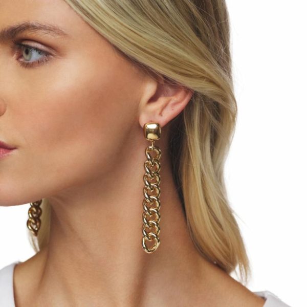 Product Description: These polished gold drop earrings showcase a square top with 8 links dangling for a statement accessory