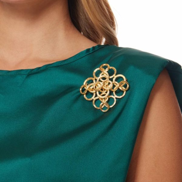 Product Description: Our gold-plated swirl brooch is a customer favorite! Pairs perfectly with your favorite scarf or on the lapel of your sharpest blazer.