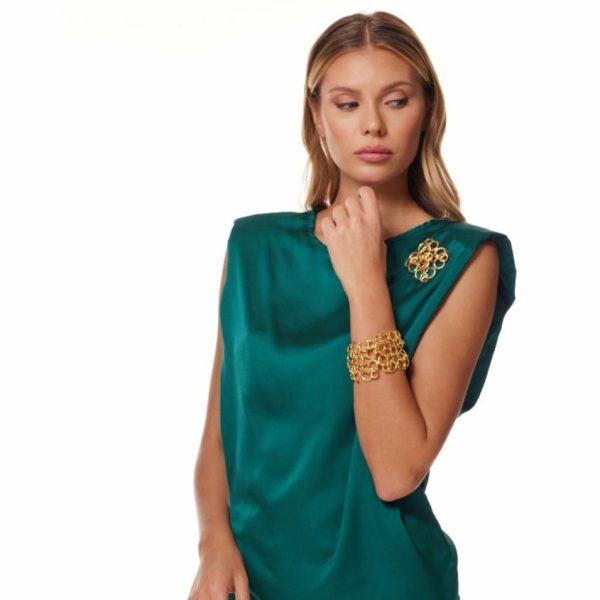 Kenneth Jay Lane Gold And Crystal Emerald Gem Pin | Women Dark Color Gem Pins & Brooches