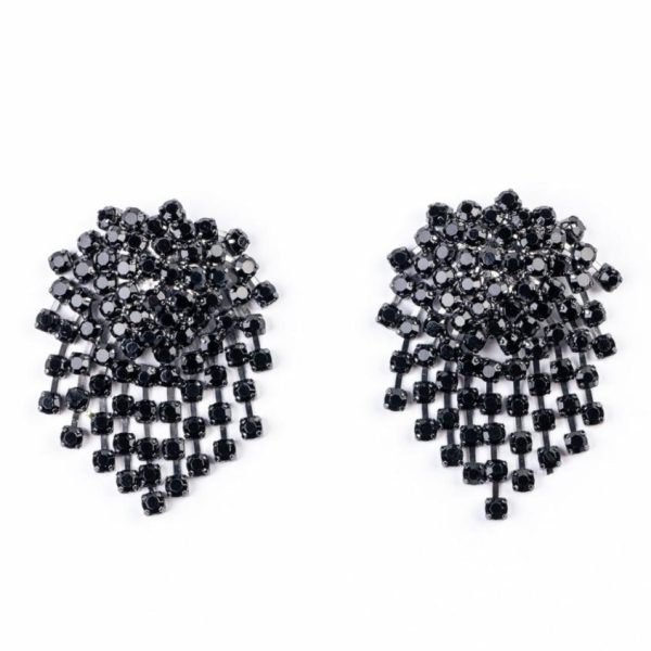 Product Description: Gunmetal-plated clip-on earrings with a cluster of square jet stones make for an extravagant look.