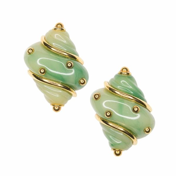 Product Description: Get your beautiful gold embellished jade resin shell earrings before they are all gone.