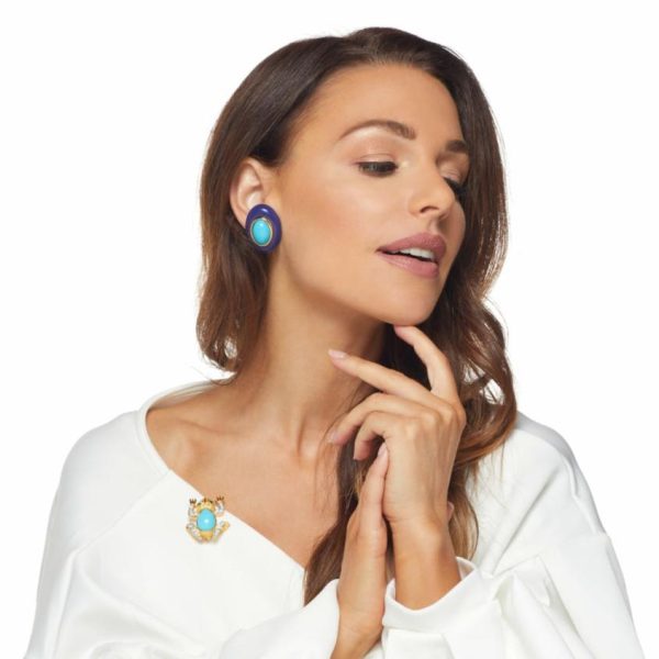 Product Description: These sophisticated, eye-catching polished gold clip earrings showcase a stunning oval turquoise center, creating an elegant statement piece that elevates any outfit with timeless appeal.