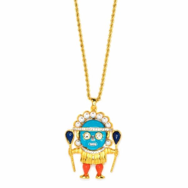 Product Description: Channel the mystical energy of ancient traditions with this beautifully crafted gold and turquoise resin Medicine Man pendant necklace, designed to make a powerful style statement.