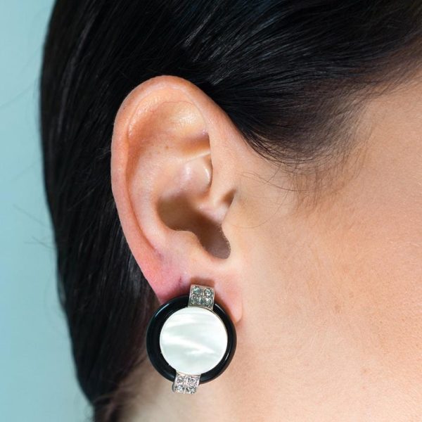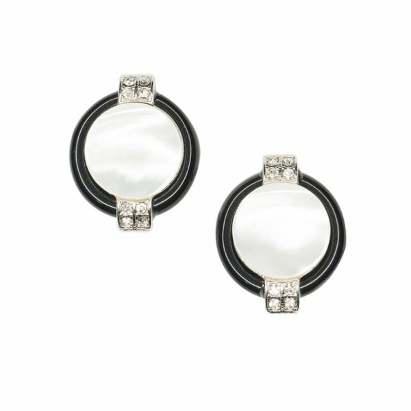 Product Description: Both sleek and stunning, these pearl earrings surrounded by black enamel and crystal detailing are sure to be a show stopper.