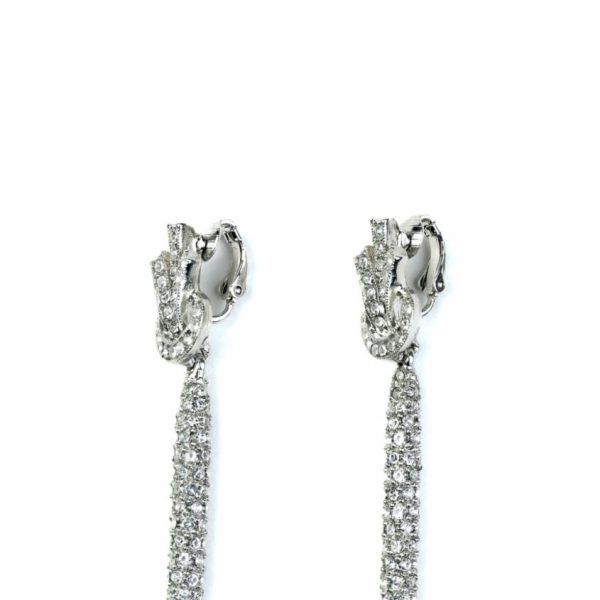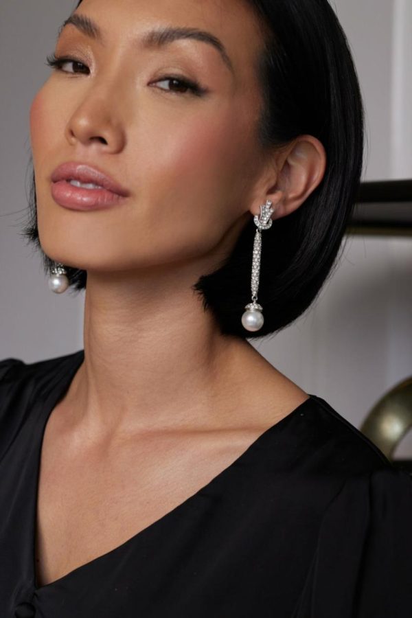 Product Description: These crystal and silver clip earrings featuring a pearl bottom boast a unique design that combines classic elegance with modern flair. Wear these for a fashionable yet timeless touch to any style.