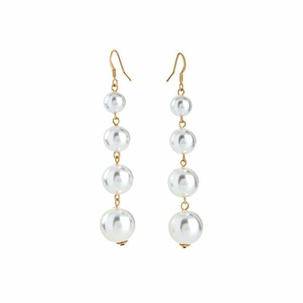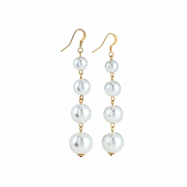 Product Description: Elevate your everyday style with these sophisticated gold fishhook earrings showcasing an artful arrangement of lustrous white pearls in graduated sizes.