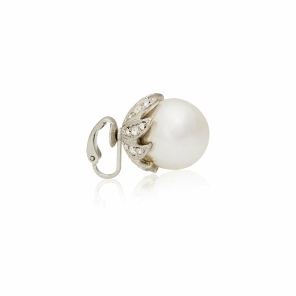 Product Description: Turn heads with these whimsical silver and crystal clip earrings, featuring delicate white pearl flowerbuds. The perfect accessory for any occasion.
