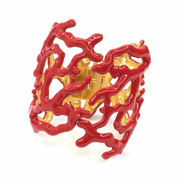 Product Description: Transcend the beauty of the ocean any day of the week with this bright red coral branch statement hinged cuff.