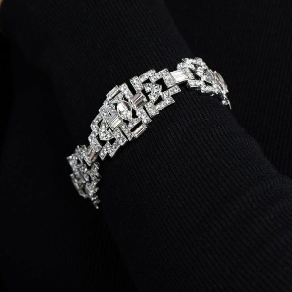 Product Description: Mirroring the glamorous geometry of the Art Deco era, this crystal-set bracelet adds vintage-chic sparkle to your look. Pair with our Silver and Crystal Deco Clip Earrings.