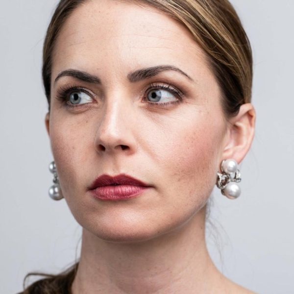Product Description: Delicate and feminine, these silver and crystal double pearl bow earrings add sophistication to any outfit.