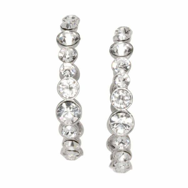 Product Description: Different size crystals adorn this stylish silver and crystal hoop pierced earring.