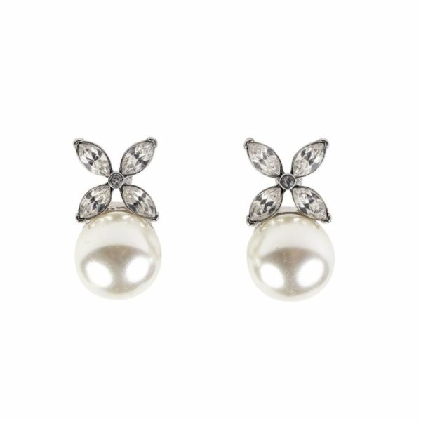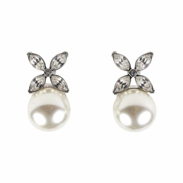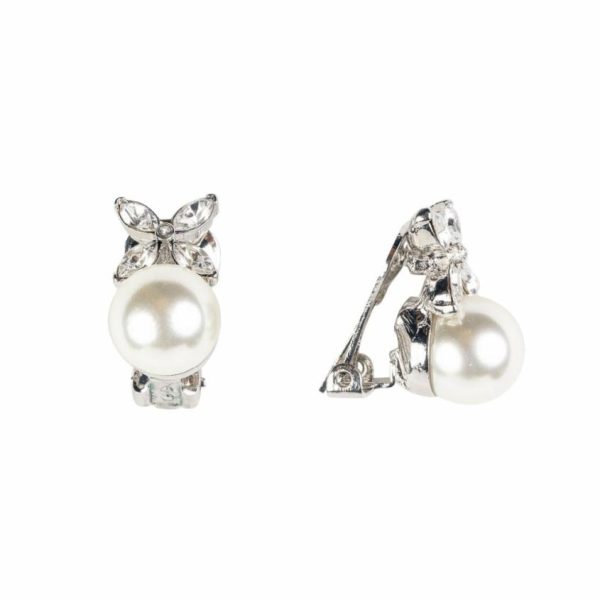 Be flawlessly elegant with these silver and crystal clip earrings featuring a pearl bottom.