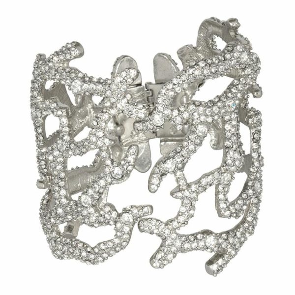 Product Description: Coral branches in silver and crystal create a timeless statement hinged bracelet.