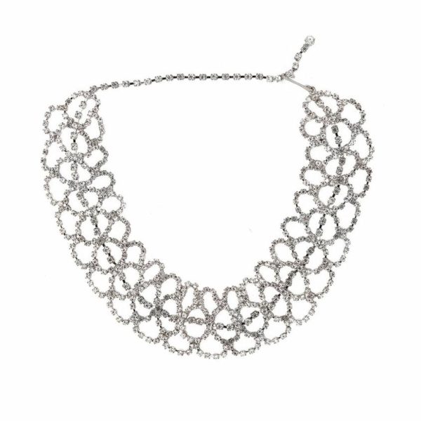 Product Description: Make a stunning entrance in this elegantly designed openwork crystal lace choker. With silver crystal features, this chocker will look like work of art wrapped across your neckline.