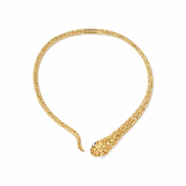 Kenneth Jay Lane Ruby Eyes Snake Spring Necklace | Women Metallic Finish Necklaces