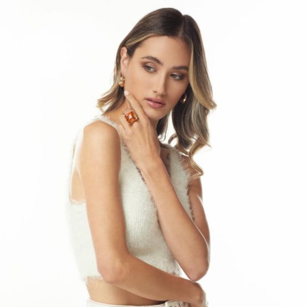 Product Description: Make a statement on your finger with these stunning, gold-plated adjustable rings finished with a gleaming topaz square-shape center stone.