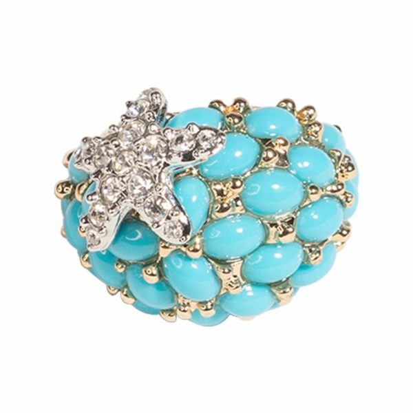 Product Description: Channel the sea with this unique turquoise cabochon and crystal starfish ring.