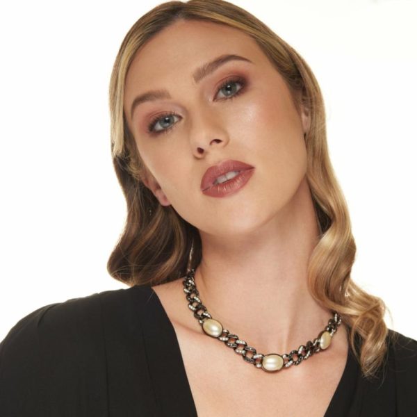 Kenneth Jay Lane Vintage Gunmetal Crystal Hematite Pearl Necklace