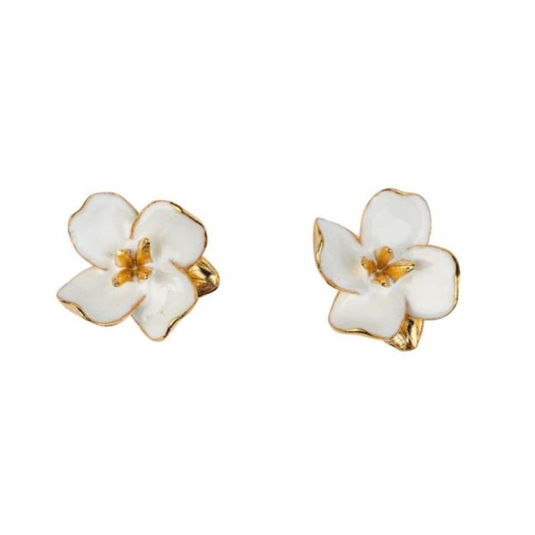 Product Description: These exquisite gold-accented floral earrings feature a delicate smaller gold blossom paired with a sophisticated white enamel flower design, creating an elegant everyday accessory that transitions seamlessly from day to evening wear.