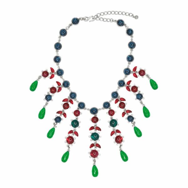 Product Description: Make a bold statement with this exquisite multi-gemstone necklace featuring vibrant sapphires, rich rubies, and deep emeralds. The sophisticated silver setting and brilliant crystal accents create dazzling brilliance that catches the light beautifully, perfect for elevating any outfit with timeless elegance.